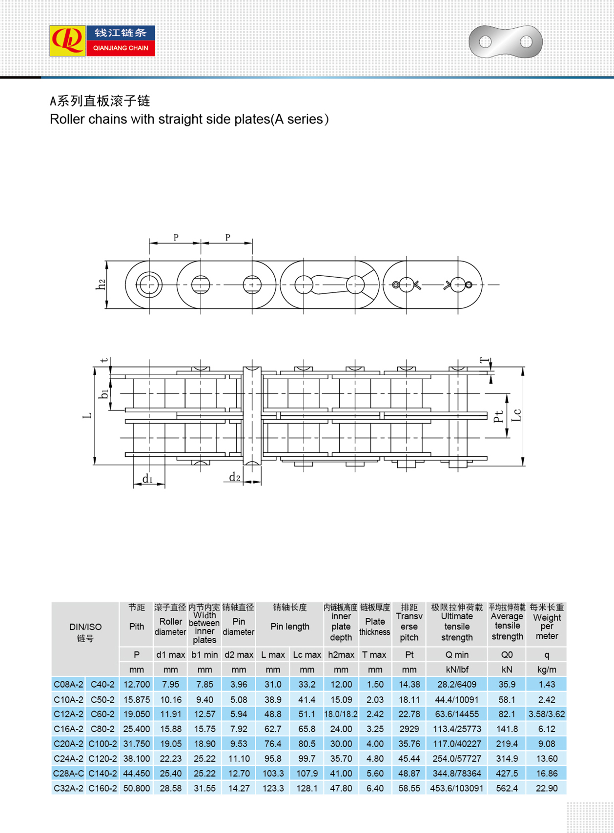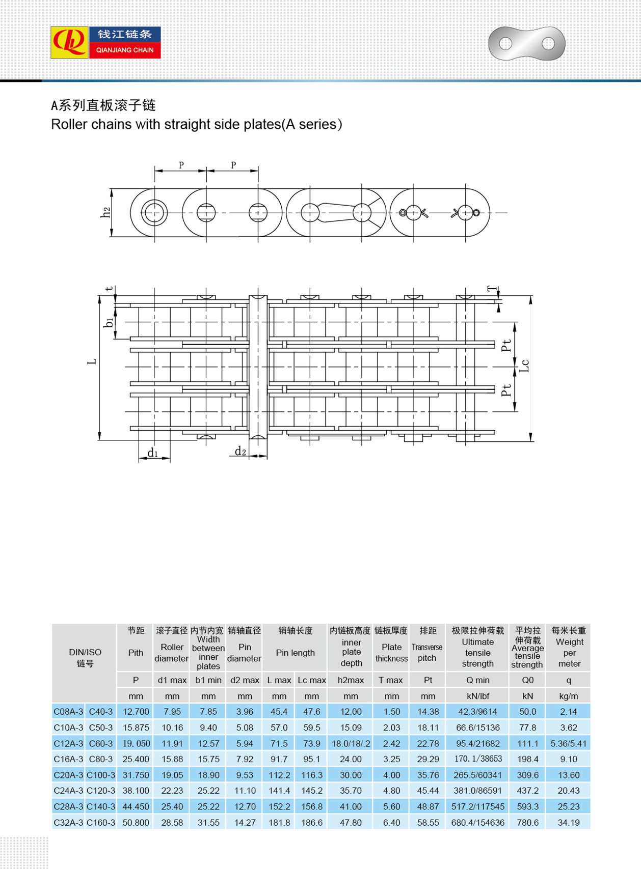 ストレート側板付きローラチェーン(Aシリーズ)は、耐久性、効率性、メンテナンス性を考慮して設計されています。これらのチェーンは低騒音動作で知られており、スムーズで静かな性能を発揮し、騒音低減が重要な環境に最適です。これらのチェーンの構造に使用される材料は、高強度を実現するために慎重に選択されており、厳しい条件下でも破損しにくいことが保証されています。