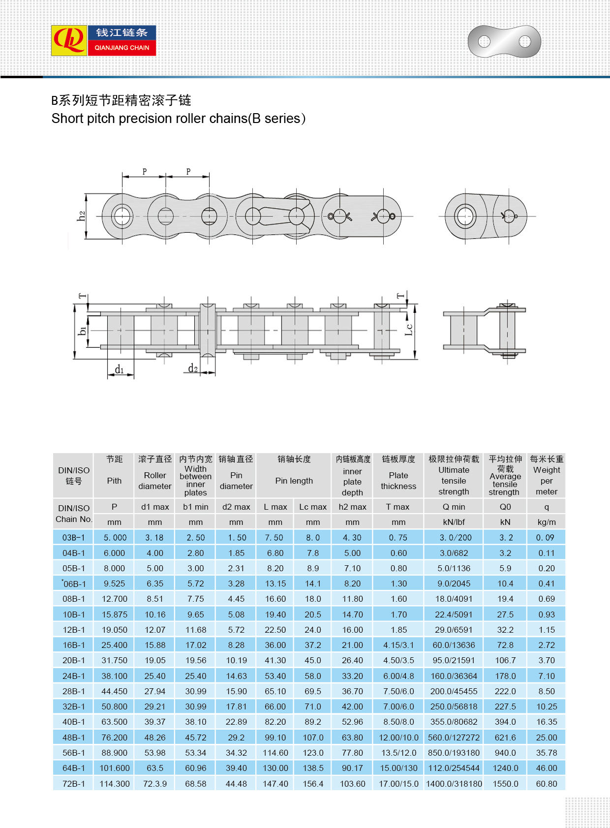 ショートピッチ精密ローラチェーン(Bシリーズ)