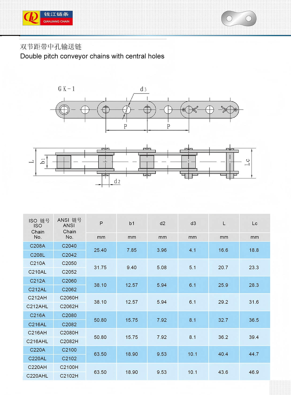 これらのチェーンにより商品のシームレスな水平または傾斜移動が可能になり、人手による介入と運用コストが削減されるため、企業は生産性の向上という恩恵を受けます。製造プロセスを合理化する場合でも、倉庫物流を最適化する場合でも、中央穴付きダブルピッチコンベヤチェーンは比類のない適応性と効率性を提供し、業務をより速く、よりスムーズに、よりスマートに実行できるようにします。この高度な搬送ソリューションを選択して、今すぐマテリアルハンドリング能力を向上させてください!
