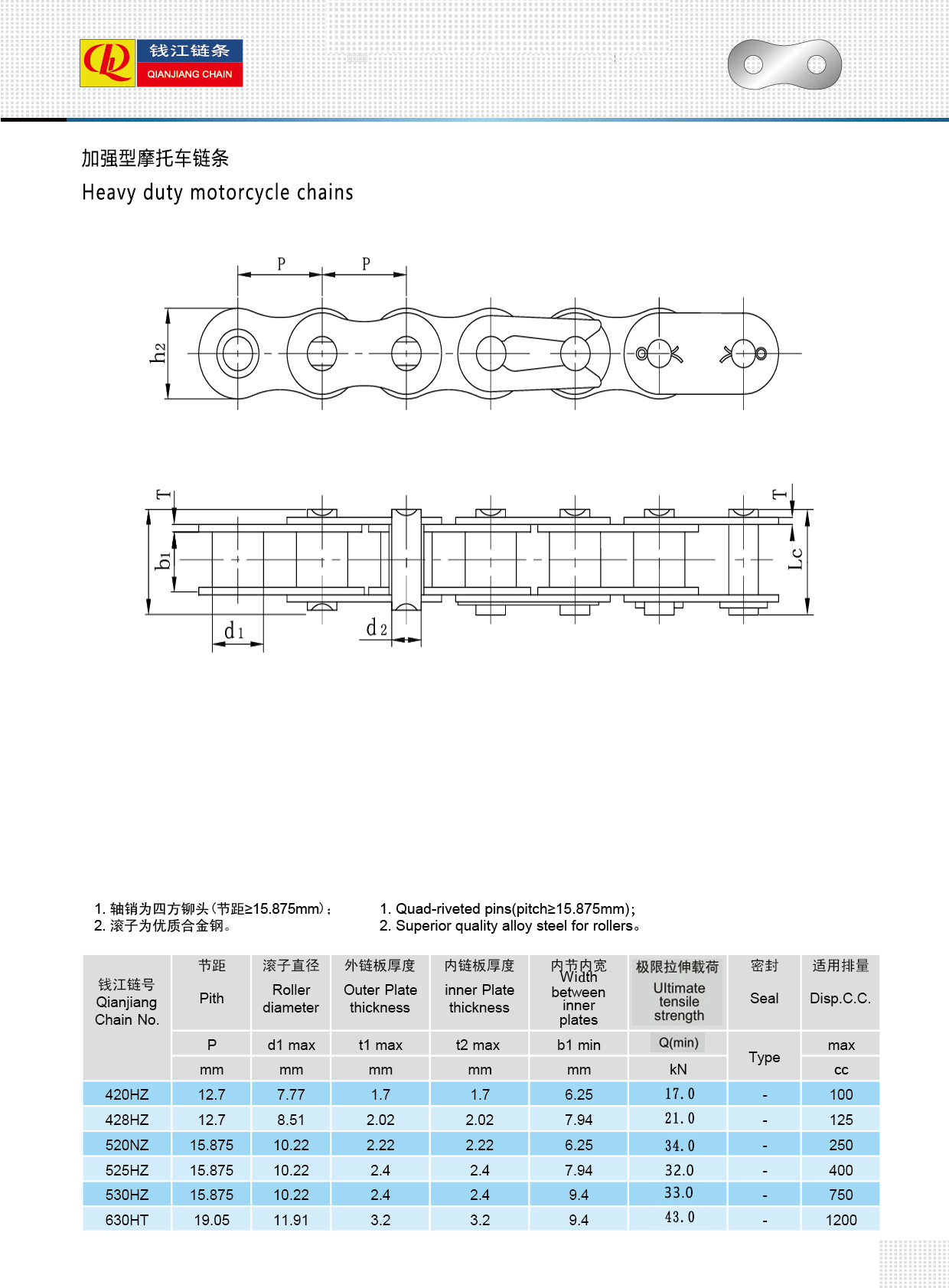 大型バイク用に設計されており、耐荷重性とスムーズな動力伝達を実現し、厳しい環境下でもより安全で効率的な走行を保証します。堅牢な構造は伸びや腐食に耐え、メンテナンスの必要性を軽減し、耐用年数を延ばします。